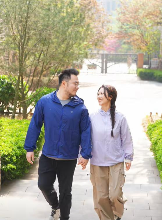 这种画面不禁让人怀疑,可能生活里最简单的快乐也不过如此吧。 这对夫妻的默契,让人不禁感叹时光带给他们的不是斑驳的褶皱,而是一种更加深刻动人的连结。 在镜头的一转瞬,他们牵着手漫步在绿意之中,步伐缓慢却步调一致。